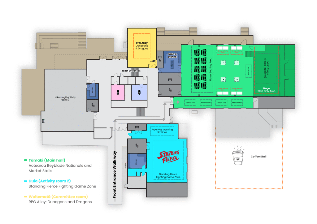 A few yum food options will be available on-site for everyone’s convenience. There are also several off-site choices nearby, though we advise players to allow plenty of time if heading out to grab food.